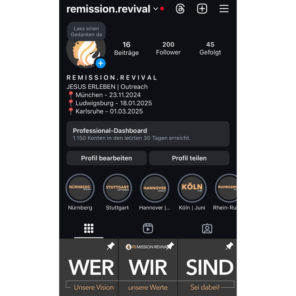 Hey! Ein kurzer Satz zu uns: Wir sind eine Gruppe von Christen, die Jesus lieben und es auf dem Herzen hat, das Evangelium auf die Straße zu bringen. Genauere Informationen zu unserer Vision und unseren Werten findest du auf unserem Instagram-Kanal, da unsere Website derzeit noch im Aufbau ist. Auf dieser Seite hast du verschiedene Möglichkeiten, mit uns in Kontakt zu treten. Nutze einfach den für dich bequemsten Weg, und wir bemühen uns, deine Nachricht so schnell wie möglich zu beantworten.